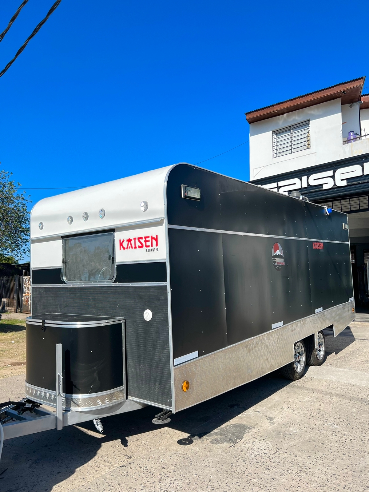 Forrado interno de paredes, toma eléctrica, salida exterior, instalación eléctrica para cartel exterior, luces de posición de acrílico con colores reglamentarios, porta garrafa.