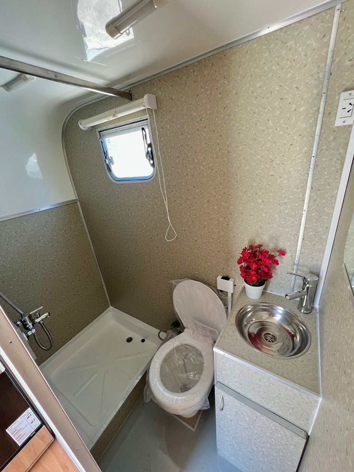 El chasis macizo de punta a punta confeccionado en UPN de 8mm, caño estructural de dos mm de espesor, ejes macizos y masas de F100 con llantas agrícolas de primera calidad rodado 15 de 5 agujeros, patas estabilizadoras y una rueda timonera, pintura protex para mayor durabilidad, chapa pintada en calibre 25mm , techo de fibra de vidrio enterizo para evitar filtraciones dándole una vida útil mayor, ventanas corredizas de aluminio con mosquiteros , luces de posición de acrílico con colores reglamentarios, entrada de 220 volt y 12 volt, porta garrafa de 10kg. todo esto y más la hace la casa rodante más segura del mercado.