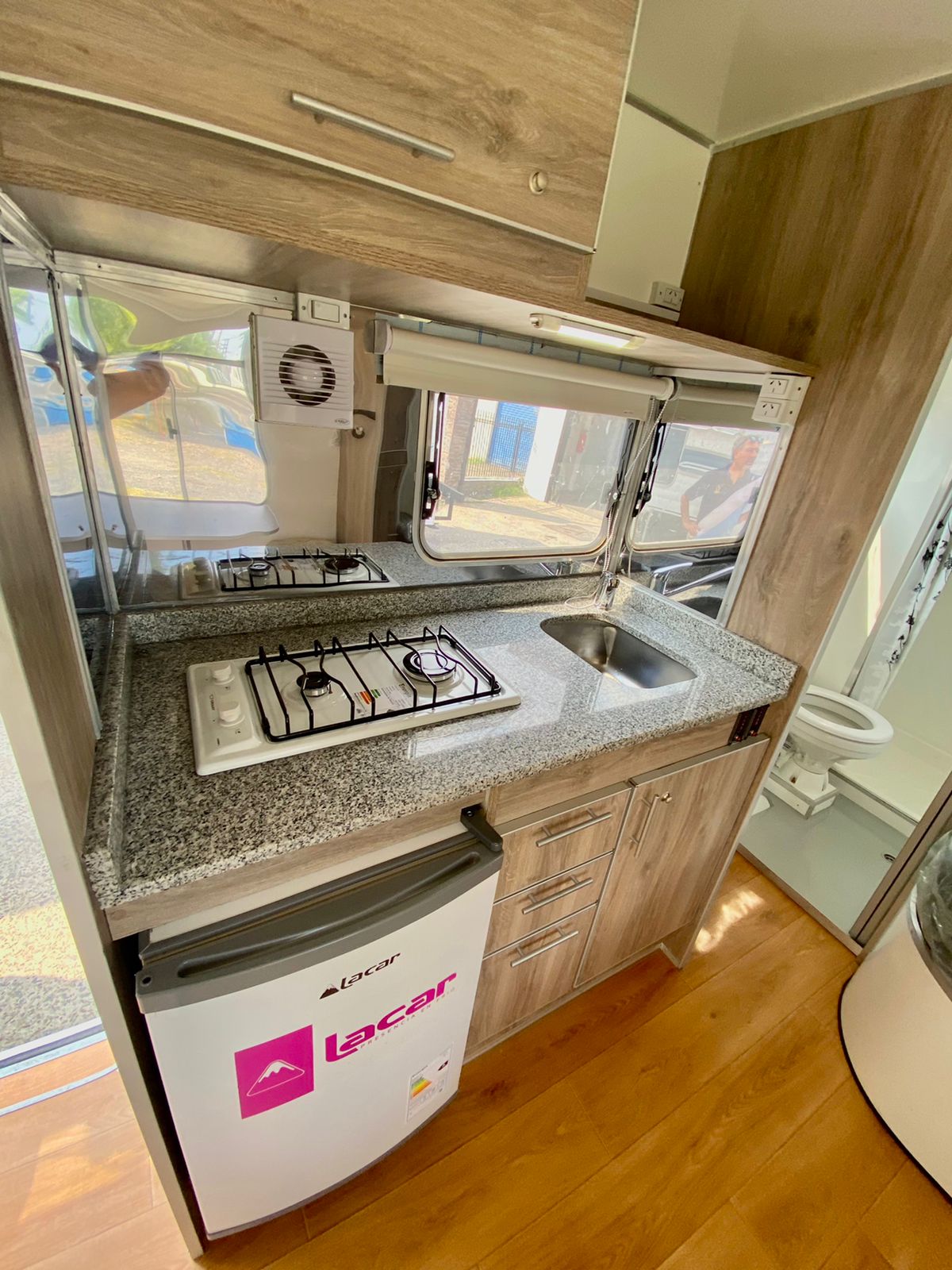 Heladera, Toldo, Ante carpa , Bomba shurflo + tanque de 100 L. de agua, Calefón a gas Bram Metal, mono comando en baño y cocina, tanque, bomba, Aire frío/calor , inodoro químico o Inodoro náutico, Rueda de auxilio ,Tiro balanceado estufa ,Kit Solar ( batería, panel solar, conversor, regulador) ,Frenos eléctricos ,Llantas cromadas 15 maxi sport, Semilla de melón, Baulera exterior, Duchador exterior ,Transformador ,Tanque de aguas grises ,Colchones de alta densidad, Tambucho, Goma anti ripio, Bidet Matic, Medidor de tanque, Extractor de aire, Porta equipaje, escalera, Batería a gel, Pata .